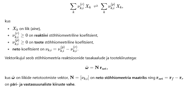 Kus „a“ on kindlate omadustega valitud katsetatav element (kogumik), „species“ on mooli(X) -või massifraktsioonid(Y) ning „rxns“ on maatriksi element (k,i), „k“ on kogumiku sees olevate elementide arv ning „i“ on reaktsiooni arv.