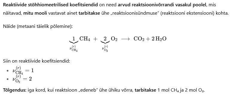 Täpsustuseks: näites toodud koodi osa set()… sisaldab lõpus osasid, CH4:1,O2:2. numbrid metaani ja hapniku taga iseloomustab nende osakaalu reaktsioonis. Üldiselt arvestatakse neid moolides.