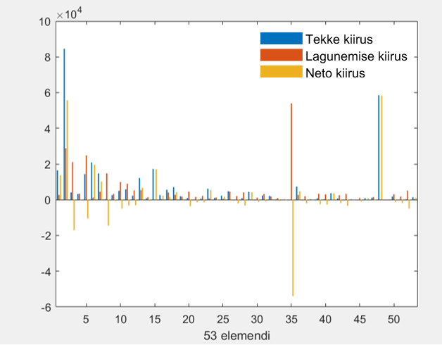 Järgneval joonisel on näha, et esimene tulp näitab reaktsioonide tekkimise kiirust, teine tulp näitab lagunemise kiirust ning kolmas tulp näitab netotootmise kiirust ehk mis reaalselt reaktsiooni loomise käigus jäi (peale lagunemist). Nende reaktsioonide näitude abil saab luua graafiku ning võrrelda tulemusi: