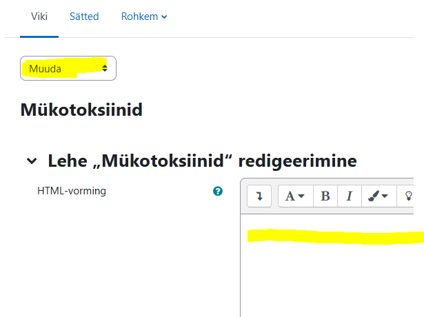 NB! Minnes oma teema juurde, on esialgu teil ees rippmenüü, kus vaikimisi kirjas Kuva. Klikkate seal ja valite Muuda! Siis tekib aken, kus saate hakata oma teksti toimetama.