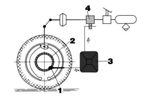 Paigal seisev pöörlemissageduse andur (1) jälgib poolusketta (2) kaudu igal ajahetkel ratta pöörlemiskiirust ja edastab elektrilise impulsi juhtplokki (3), kus selle alusel arvutatakse ratta pöörlemisele vastav sõiduki liikumiskiirus. Juhtplokk saab infot ka võrreldava kiiruse kohta, mis on ligikaudu võrdne sõiduki mõõdetud kiirusega. Kui need kiirused ei ole vastavuses ehk ratas kaldub lohisema, piiratakse või vähendatatakse rõhureguleerimisklapi (4) abil kiiresti õhu rõhku pidurikambris. Kui haardetingimused paranevad, tõstetakse rõhureguleerimisklapi kaudu uuesti pidurdusrõhku. Juhtplokk püüab tagada ratta stabiilset pidurdamist korrates reguleertsüklit sagedusega kuni 3...5 tsüklit sekundis.
